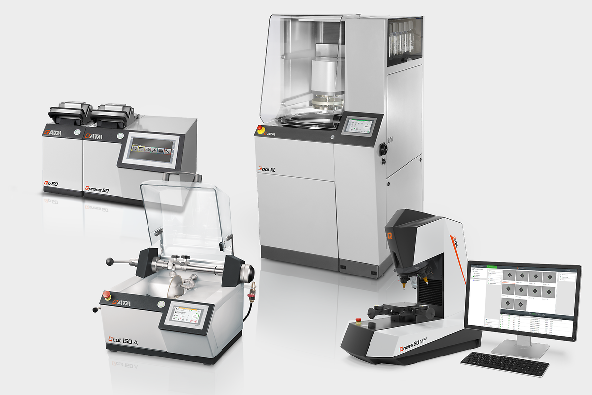• 金相制备:高质量的切割可以节省后续步骤的时间和耗材。合适的研磨/抛光机以及正确的耗材和参数可以提供简单的解决方案来制备具有不同形式和特性的不同样品。